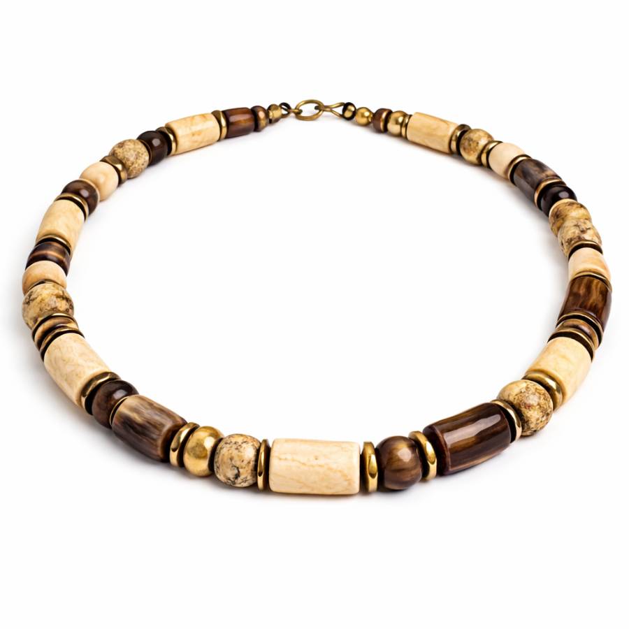 A unique necklace handcrafted in Haiti using genuine leather cords and hand-beaded accents. Combines natural textures with artisanal craftsmanship.