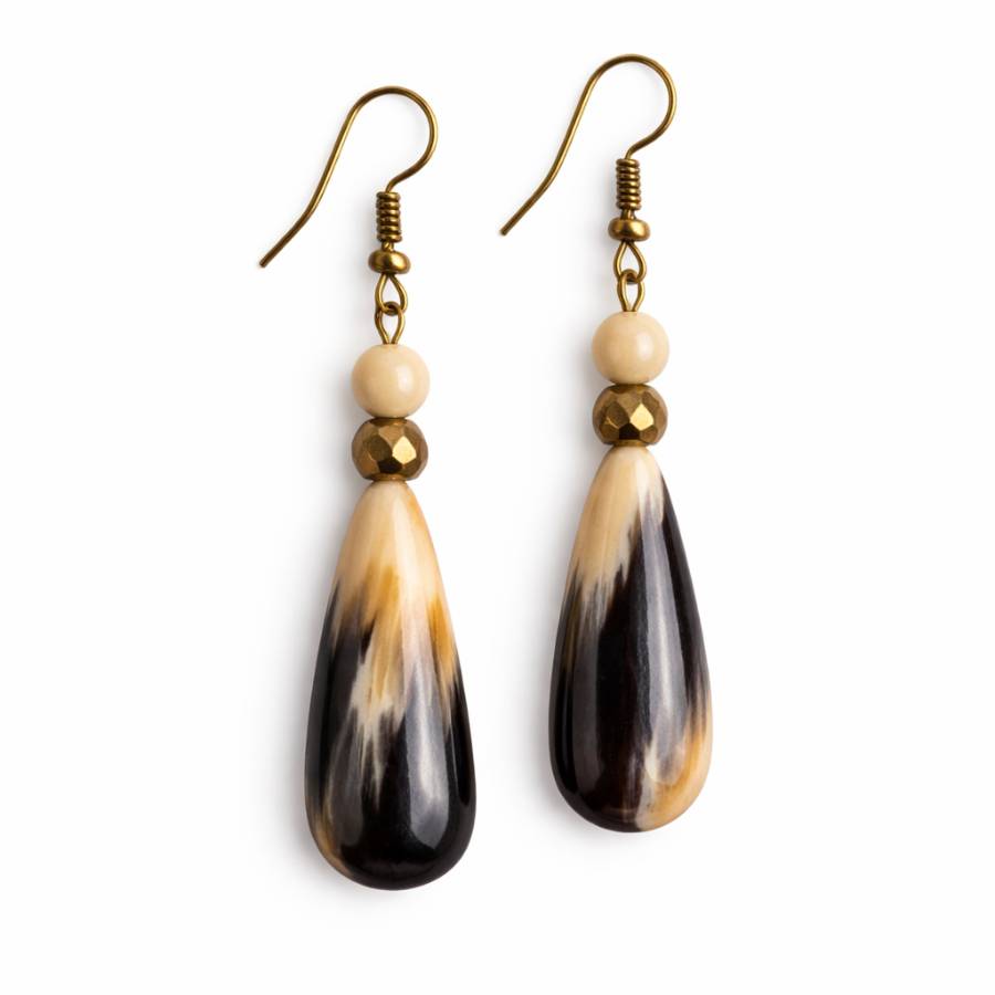 Elegant earrings handcrafted in Haiti using polished cow horn beads. Lightweight and naturally unique with organic color variations.
