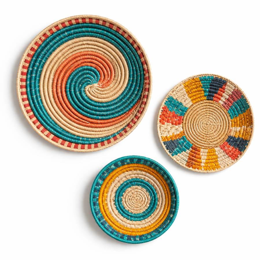 Bring texture and warmth to your space with this set of three handwoven wall baskets. Crafted by Haitian artisans using natural fibers, each basket features subtle variations in pattern and tone.